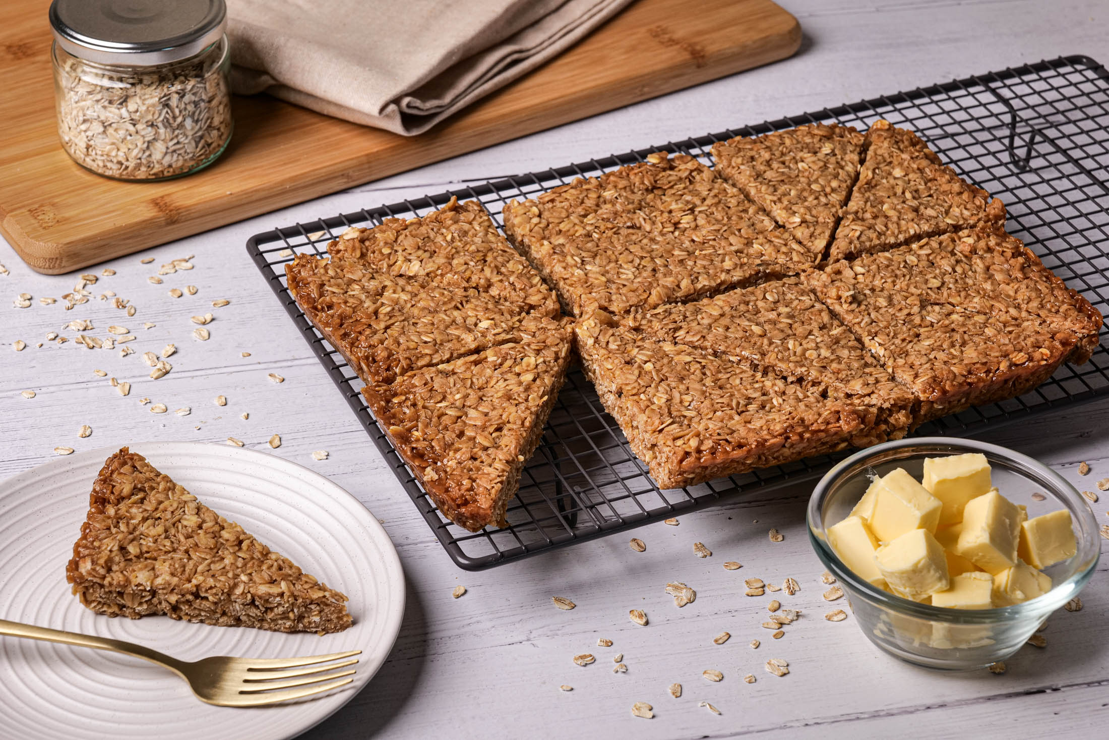 Our Traditional Butter Flapjack is a chewy, golden treat made with wholesome rolled oats, rich butter, and sweet golden syrup. Perfectly baked for a classic, buttery flavour in every bite.