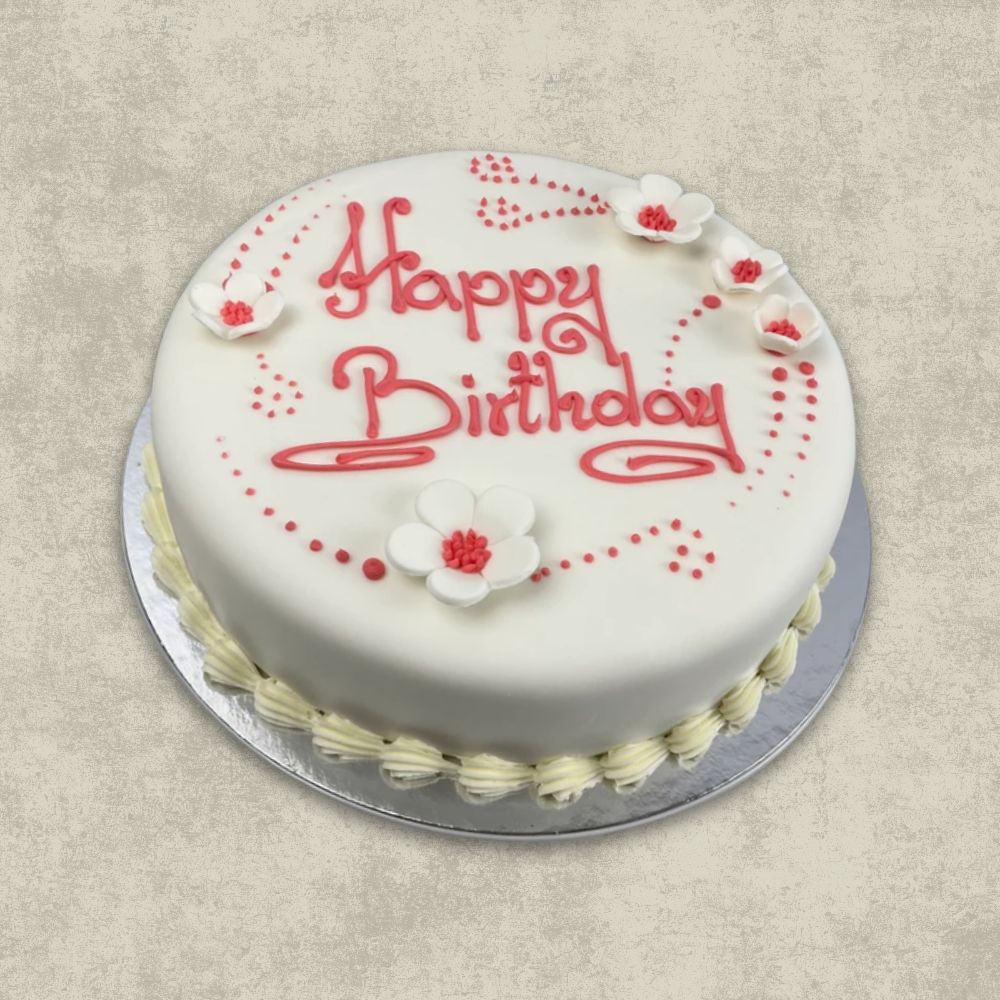 Includes white iced fondant, a piped message in either pink, blue or chocolate, plus decorations. Choose either Carrot, Victoria or Chocolate.